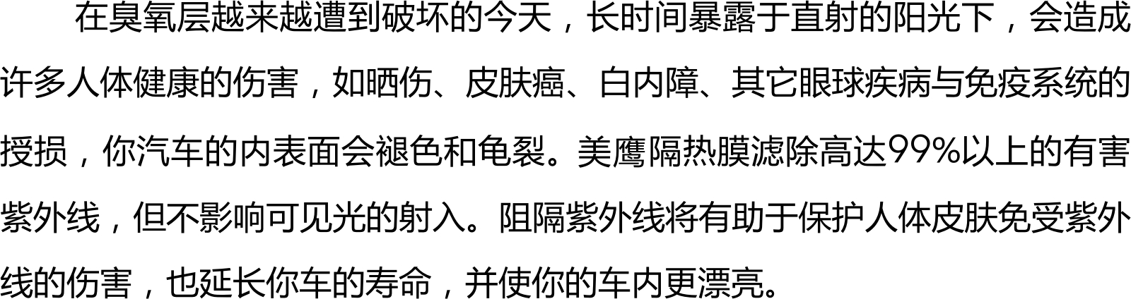 历史悠久 始于美国 美鹰诞生于美国,品牌渊源可以追溯到1955年。在2001年,美鹰开始了其全球范围内的战略布局。作为全球窗膜行业的专家,美鹰的生产基地拥有世界级领先的全部生产工艺和垂直一体化生产线。工厂占地面积超过70,000平方米,包括深层染色,磁控溅射,真空镀铝,溶剂涂层,夹层合成,贴合分切等生产技术在内。赢领行业的技术优势使美鹰可以为客户提供高品质的汽车膜全面解决方案。